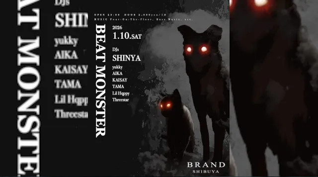 2026/01/10(土) BRAND SHIBUYA 2024年3月に店内をアップデートし、リニューアルオープン迎え。 様々なDANCE MUSICの音楽性を取り入れ、更なる進化を遂げようとする渋谷のカルチャーと一緒にまた歩み始める。