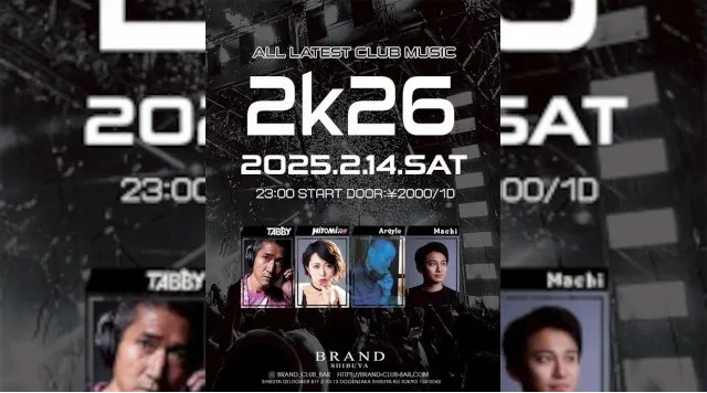 2026/02/07(土) BRAND SHIBUYA 2024年3月に店内をアップデートし、リニューアルオープン迎え。 様々なDANCE MUSICの音楽性を取り入れ、更なる進化を遂げようとする渋谷のカルチャーと一緒にまた歩み始める。